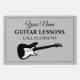 Custom guitar lessons yard sign for music teacher. Elegant black and white design with modern electric rock guitar and classy typography. Add your own phone number and name. Make your own signage for garden or road side. Handy for private lessons, musician, guitar player, piano school, shop, instrument store, studio, concert, orchestra etc. Professional marketing materials and promotional accessories for advertising your home business or company. Add an arrow for directions optionally.