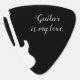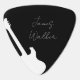 Black-and-white object with a personal touch. A clever plan to boost the guitar player's own profile. Initials on the front, name or band name on the back.