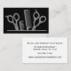 Scissors and Comb Black & White Minimalist Design. Make a bold first impression with this custom hair stylist business card featuring a sleek black background with iconic white scissors, comb, and styling tools. The minimalist front design is perfect for showcasing your profession, while the back provides space for your salon name, contact information, and website. Ideal for hairdressers, barbers, or beauty professionals who want a modern, professional, and stylish card to represent their brand. Perfect for networking events, client referrals, or appointment reminders.