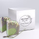 This "Handmade with love" rubber stamp features a floral frame with custom name.