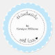This cute personalized round party favor sticker features a light blue ruffled edge and a ribbon stitched border, a black heart and the words "Handmade with love". Perfect for your handmade goodies, crafts, gifts, candy bags, jars, cans, gift boxes, party favors and more! Stand out with these unique custom sticker seals. Click the "Customize it!" button to change the text size, text color, font style and more! Please note: the round ribbon stitch border has a ribbon stitch appearance.