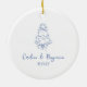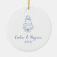Custom Handwritten French Blue Doodle Wedding Cake Ceramic Ornament