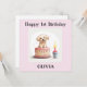 Personalized 1st Birthday card for a girl. Celebrate a special one-year-old girl with this customizable first birthday card! Featuring an adorable puppy design, the card includes a sweet message on the back: "One little candle and a cake, one first birthday wish to make." Personalize it: add, change, or remove text, choose your favorite font and color, customize with the birthday girl’s name.