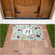 Our Happy Birds in Fields of Flowers design doormat is so pretty, fun, whimsical, and colorful you're sure to fall in love with it! A cute whimsical birds, flowers, and hearts design in green, cream, coral, chocolate brown, and blue, this fun, colorful, whimsical door mat features a white flower shape banner that you can easily personalize with your monogram initial!