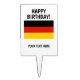 Custom Happy Birthday German flag cake topper design. Fun cake picks with personalized wishes and name. Cute party supplies and decoration items. Also fun for cupcakes and other food items. Flag or Germany. Also nice for Christmas Holidays, wedding, bridal shower, gathering, celebration, business, welcome home etc.