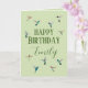 Pretty custom Happy Birthday card for hummingbird lovers featuring some of the cute species of hummingbirds that can be found in the US such as Anna's hummingbirds, Allen's, Costa's, Black-chinned, Calliope, Rufous, Mexican Violetear and Broad-billed hummingbirds. The inside message "Wishing you the happiest of birthdays!" can be changed or deleted for a handwritten message.