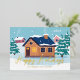 This beautiful custom real estate gold foil holiday card is perfect for a realty company located up north. A beautiful home drawing of a house lined with snow and smoke coming out of the chimney next to green trees. A realtor can keep Happy Holidays in cursive script or customize with their own seasons greetings. Add your personalized message on the back.