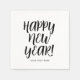 Custom Happy New Year script typography fun party Napkins. Black and white design with personalized name or quote. Great for celebrations and festivities.