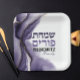 Custom Happy Purim Purple Watercolor Agate Square Paper Plates