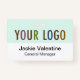 Easily personalize our professional hard plastic name badge with your own company logo, employee name, job title, or other custom text. It's made of durable PVC plastic. You can customize the logo background color to match your corporate colors. Available with a lanyard, metal clip, or retractable clip. The dimensions are 3.38 inch x 2.13 inch. No minimum order quantity and no setup fee.
