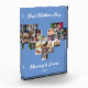 The design features a blue background, 26 photo collage in the shape of a heart, mothers day script , name and year.