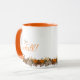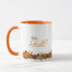 Hello Fall! If you're a lover of all things that the fall season brings this two-tone mug is for you. The design features an autumn bouquet of pumpkins and leaves in watercolor and modern script typography in orange and brown. Happy Fall Y'All!