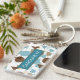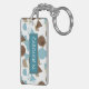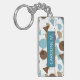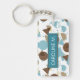 Durable rectangular key chain with classy, fun and contemporary pastel gray turquoise teal blue, beige, taupe and brown colored abstract geometric triangles, polka dots and half circles mosaic pattern design on a white background. With room to customize or personalize with name of your choice. Stylish, modern and cool customizable style for the fashionable woman. To attach to your purse or backpack zipper, to hold loyalty rewards or membership cards, or of course... to hold keys! What ever keys you want to stay in place and hold together, a unique personalized key ring will make it look nicer and also easier to recognize as your own set. Click on our store name to check out more unique key holders with other custom designs.