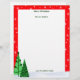 Use this customizable Christmas stationary to send your family Christmas letter this year. This holiday letterhead features cute Christmas trees, a red starry border and a custom signature, with plenty of room for your own personal message. The default header text is "Merry Christmas". You can customize or remove the header, body and signature text on the product order page. Be sure to check out the coordinating envelopes, custom postage stamps and address labels in our Fanciful Trees Christmas Collection.