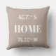 A beautiful way to show how much you love your home by customizing this design with your own home coordinates. Search for your coordinates on a mapping site and simply customize the text, latitude and longitude numbers to create your own personalized design. A neutral warm toned brown color in the background making it ideal for any home decor.
