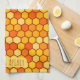 Custom Honeycomb Bright Orange and Golden Beehive Kitchen Towel