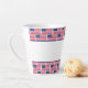 Patriotic STARS AND STRIPES Latte Mug, specially designed for hotels, guesthouses, businesses and within the hospitality industry. The design shows plain white panel with the USA Flag of the United States of America in a tiled pattern background. The customizable text reads WELCOME plus placeholder name, which you can personalize with the name of your business, and also add your own greeting. The text is right hand justified and can go full width across. A great way to add those small but vital touches for your clients, visitors and guests. This flag design offers a patriotic twist to your corporate drinkware.