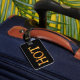 Luggage tags help you identify your luggage, backpacks, gym bags, golf bags and more from other bags on the luggage carousel, train or bus, and prevent loss. Easily and quickly pick your bag out of the herd with this luggage tag that has a unique design on the front and the back for your name, address, city, state and zip code information. Change the text in the fields provided. You can change font style, size, and color.