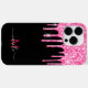 Monogram solid matte jet black and simulated Metallic bright neon hot pink dripping sparkling faux glitter iPhone and Android cases, with elegant formatted personalization. This template allows you to quickly add your name with ease using the simple personalization tool. ****TIP: in order to keep the ~ extensions, leave the strange empty square boxes surrounding the name, and simply replace the text (name) between them with your own name.*****