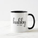 Customisable Established Year HUBBY Coffee Mug in a script font, perfect as couples' wedding gift or anniversary gift. Here in a two black and white tone.