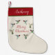 Custom Christmas stocking for the hummingbird lover featuring Ruby-throated Hummingbirds on a cream background.