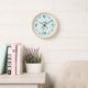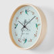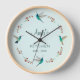 This pretty customizable wall clock is featuring a watercolor wreath of hummingbirds and botanical branches on a light blue background. The font size and font style can be changed by clicking on "Edit design". All hummingbird images are taken from original watercolors by C. Dobbins.