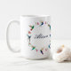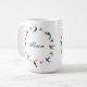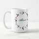 Custom mug for hummingbird lovers featuring a wreath of several species of tropical hummingbirds such as Velvet-purple Coronet Hummingbirds, White-necked Jacobin, Golden-tailed Sapphire, Fiery-throated, and Mango Hummingbirds and the quote "Time spent watching hummingbirds is never wasted". All images taken from original watercolor paintings by Christiane Dobbins. The font size can be changed by clicking on "Edit using design tool".