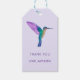 This pretty favor tag is featuring a fawn-breasted brilliant hummingbird on a light purple background. The font, font size and color can be changed by clicking on "customize further".