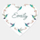 Beautiful custom heart-shaped sticker for hummingbird lovers featuring North American hummingbirds such as Violet-eared, Broad-billed and Rufous-tailed Hummingbirds and your name. The font style and font size can be changed by clicking on "Edit using design tool."