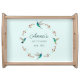 Very pretty customizable serving tray featuring a watercolor wreath of hummingbirds and botanical branches on a light blue background. The font size and font style can be changed by clicking on "Edit using design tool". All hummingbird images are taken from original watercolors by C. Dobbins.