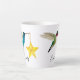 Custom latte mug featuring a broad-billed and a broad-tailed hummingbird with star ornaments. Just add your name. The font style and font size can be changed by clicking on "Edit using design tool".