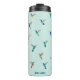 Unique thermal tumbler for hummingbird lovers featuring several species of hand-painted tropical hummingbirds, such as a Broad-billed Hummingbirds, Fiery-throated Hummingbirds, Golden-tailed Sapphire and Sapphire-bellied Hummingbirds, Rufous-tailed Hummingbirds, Mexican Violetear, Coronet and Glittering Starfrontlet Hummingbirds. Images taken from original watercolor paintings by C. Dobbins.