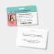 Replace information with yours and write important contacts a well as extra information on the back of the card. You can also buy a Metal Clip, Lanyard or Retractable at the same time to secure the badge to the person.