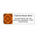 This return address label design features an abstract pattern of squares colored various shades of colors like brown and orange. It also features a custom person, family or business name, above a custom mailing address.