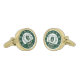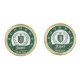Add a touch of regal sophistication to your wedding attire with these personalized monogram cufflinks. Designed in a timeless hunter green and ivory palette, each cufflink features a detailed heraldic crest with a majestic crown and a traditional laurel wreath.