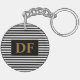 Custom Initial Black/White Stripes Keychain