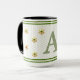 Stylish and unique. This customizable monogram mug features an 'Initial Letter' in a complementary muted green color, against a honeycomb background and golden floral elements. Customize this mug with handle and interior colors to suit your preference. This collection allows you to personalize the monogram/ initial letter. This chic and trendy mug makes a great gift with a personal touch. TIP: Using Zazzle's own Design Tool allows you to customize the color of the letter if you prefer.