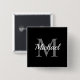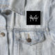 Custom Initial Monogram Script Name Personalized Black Template Elegant Trendy Square Button.