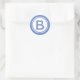This monogrammed sticker can be used for an envelope seal, a custom gift label, or for other occasions. This personalized sticker has a blue initial on a background of white with a circle border. The initial in the middle can be easily customized to a letter of your choice.