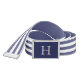 This nautical belt features my digital design of navy blue and white horizontal stripes. The buckle features your choice of initial in white (this can be customised on the right) on a matching navy blue background. The back is also in navy blue.