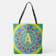 Custom initial psychedelic Large Tote greens