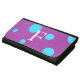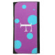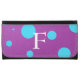 This stylish and fun wallet features blue and purple polka dots and is personalized with your initial.