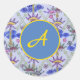 CUSTOM INITIAL ROUND STICKER WITH BLUE FLOWERS