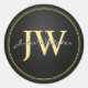 Custom Initials Black Gold Classic Round Sticker