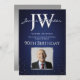 Custom Initials Elegant 90th Birthday Blue Silver Invitation
