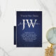 Send your gratitude in style with this elegant navy blue and silver thank you card, featuring bold custom initials and refined typography. Perfect for weddings, milestone birthdays, graduations, or formal events, this sophisticated design adds a luxe touch to your heartfelt message. Fully customizable with your name or initials for a polished and personal finish.