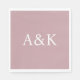These custom wedding or event napkins feature a clean, modern, and elegant design. Sample initials of the bride and groom are printed in the center in a sophisticated white font. The background is a solid dusty rose or mauve color. You can personalize the napkins to include your own custom initials or other text of your choice.