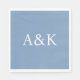 These custom wedding or event napkins feature a clean, modern, and elegant design. Sample initials of the bride and groom are printed in the center in a sophisticated white font. The background is a dusty slate blue color. You can personalize the napkins to include your own custom initials or other text of your choice.