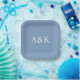 These custom wedding or event plates feature a clean, modern, and elegant design. Sample initials of the bride and groom are printed in the center in a sophisticated white font. The background is a dusty slate blue color. You can personalize the plates to include your own custom initials or other text of your choice.