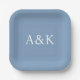 Custom Initials on Dusty Slate Blue Wedding Paper Plates